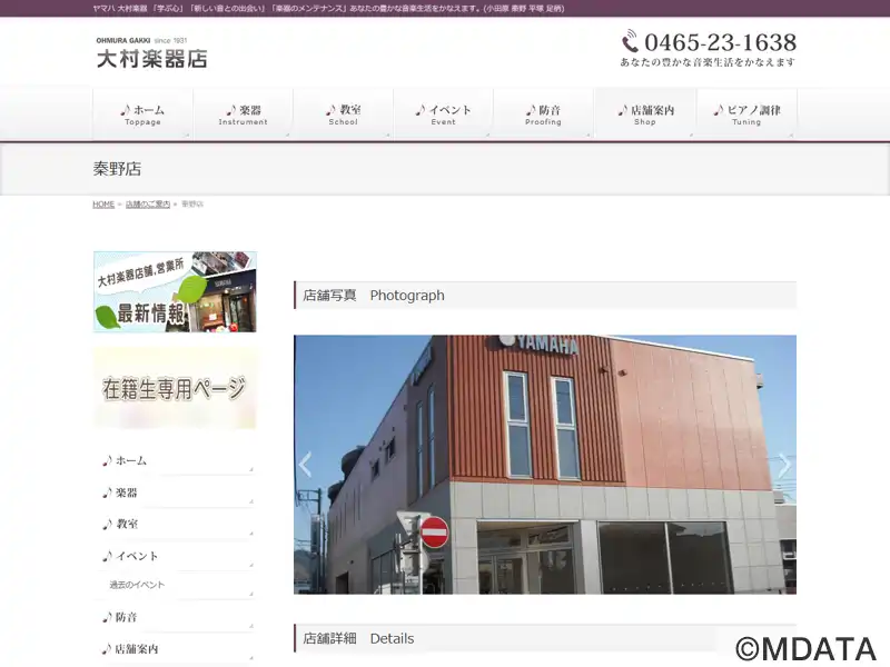 小田原市の秦野駅南口から徒歩2分にある、大村楽器の秦野店。ヤマハ特約店として、ピアノ、エレクトーン、電子ピアノ、管楽器、弦楽器、教育用楽器などを展示販売する。また、ピアノの調律や楽器修理も受け付けている。2階の「秦野レッスンセンター」では、ヤマハ認定講師によるヤマハ音楽教室、ヤマハ英語教室、大村楽器オリジナルレッスンとしてピアノ、エレクトーン、ギター、ドラム、バイオリンなど多くのコースを開講している。
