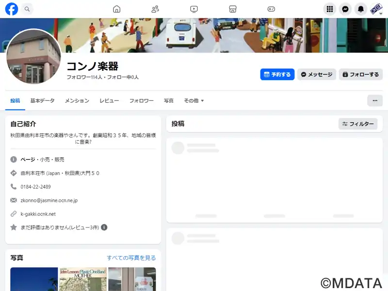 由利本荘市にある、1960年に創業した楽器店。ピアノ、キーボード、シンセサイザーなどの鍵盤楽器をはじめ、LM楽器、管弦楽器、打楽器、和楽器、教育楽器など多種多様な楽器を取り揃えている。アクセサリー類も充実。音楽スタジオの貸し出しや、ピアノ、ギターなどの音楽教室も開講もしている。ピアノの調律や修理などのアフターサービスも行っており、地域に根ざした身近な楽器店として地元の音楽好きに親しまれている。