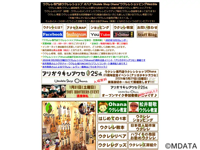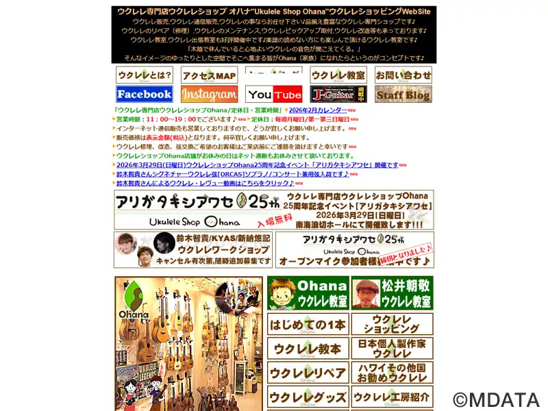 大阪・岸和田市にあるウクレレ専門店。ハワイ製や日本の個人ビルダーによるウクレレをはじめ、新品・中古を問わず多彩なラインナップを揃える。店内は「木陰で聞こえるウクレレの音色」をイメージした落ち着いた雰囲気で、訪れる人々が自然と交流できる空間となっている。ウクレレの修理や改造、ピックアップ取り付けなどのサービスも行っており、初心者から経験者まで幅広く対応。楽譜が読めなくても楽しめる教室も開催している。
