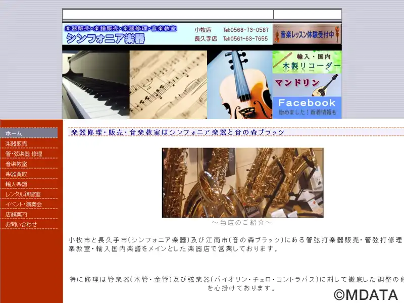 愛知県小牧市にある管・弦・打楽器を中心に取り扱う楽器店。豊富な知識と経験をもつスタッフが最適な楽器選びをサポートする。リペアマンが常駐し、メンテナンスや修理・改造・オーバーホール、弦楽器の弓の毛替、ピアノ調律に対応する。また、併設するシンフォニアミュージックスクールでは、幼児から大人まで、個人レッスンを基本に多彩なコースが設けられ、レッスン空き時間はスタジオ・レッスン室の練習室レンタルも可能。