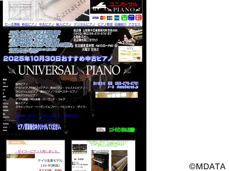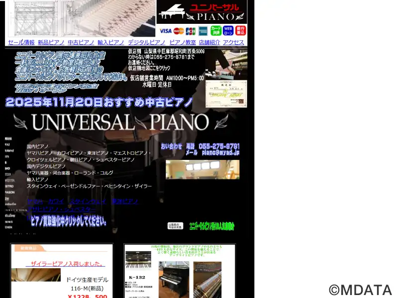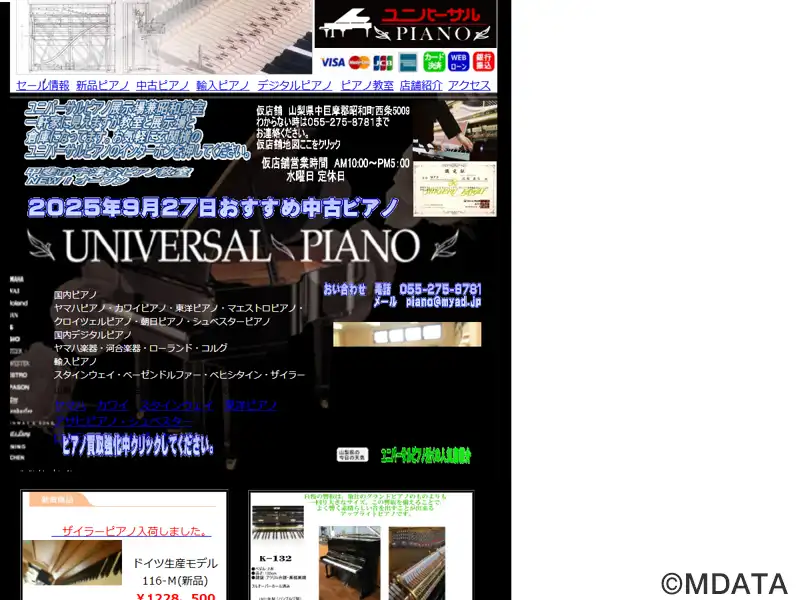 山梨県昭和町を拠点として、1972年創業したピアノ専門店。カワイ、ヤマハなど国内ブランドから輸入ピアノ、家具調ピアノ、デジタルピアノまで幅広く展示。新品・中古ピアノを丁寧に整備し販売。ショールームで実際に試奏可能。ピアノ・バイオリン教室を県内複数拠点で運営し、子供から大人までクラシック、ジャズ、ポピュラーなど多様なジャンルに対応。経験豊富な講師による個人レッスンもあり。地域の音楽文化を支えている。