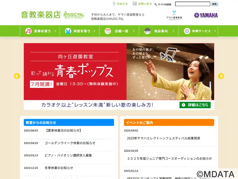 横浜市と川崎市を拠点に、ヤマハ特約店として、ピアノ、エレクトーン、クラビノーバをはじめとする鍵盤楽器の販売、防音室や楽器のレンタル、ピアノ調律などのサービスを提供する総合楽器店。たまプラーザ本店では、中古のヤマハアップライトピアノも展示。「MUSIC PALたまプラーザ店」では、子供から大人までを対象にしたヤマハ音楽教室やオリジナル個人レッスンを開講。各個人のレベルに合わせて、専門講師がサポートする。