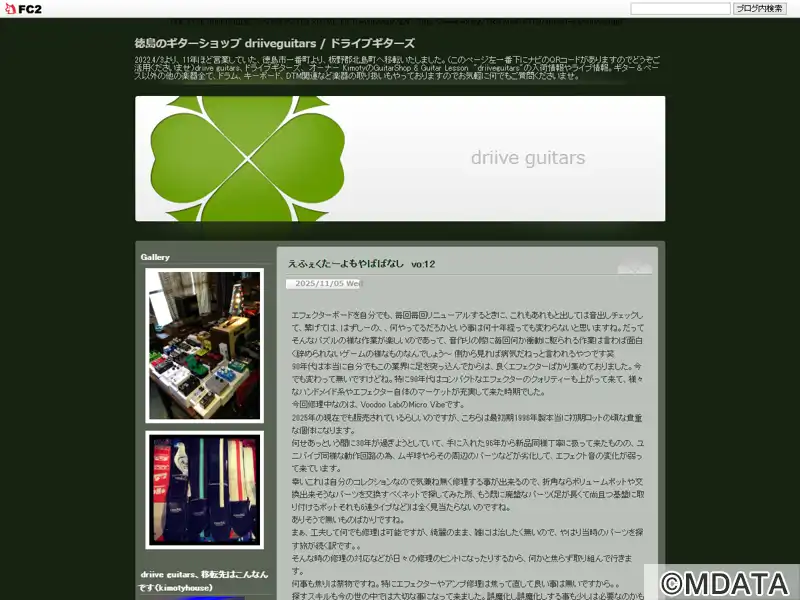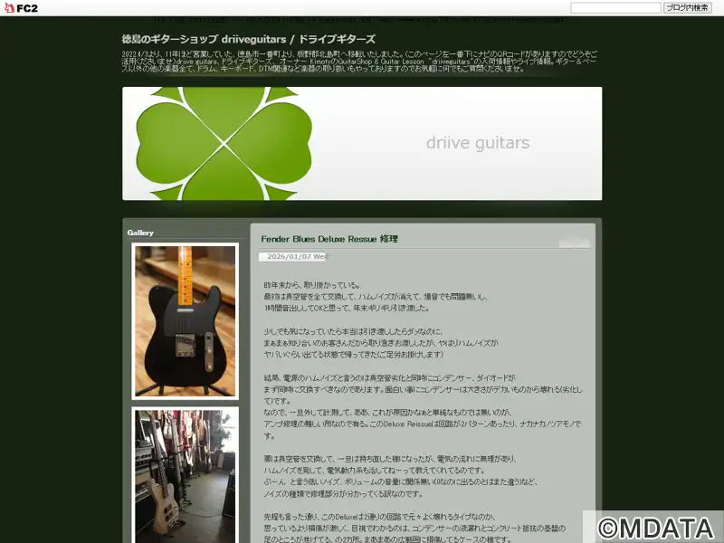 driive guitarsは、徳島にある初心者に優しいギターショップ。地元有名楽器店の販売業務を経験後、2011年7月に開業し、2022年4月より北島町kimoty house1Fに店舗を移転した。ギターを中心に幅広い楽器を取り扱っており、ギター・エフェクターは試奏可能。購入特典として初心者向けギターレッスンも格安で行なっている。ピアノレッスン室併設、無料駐車スペース3~4台。