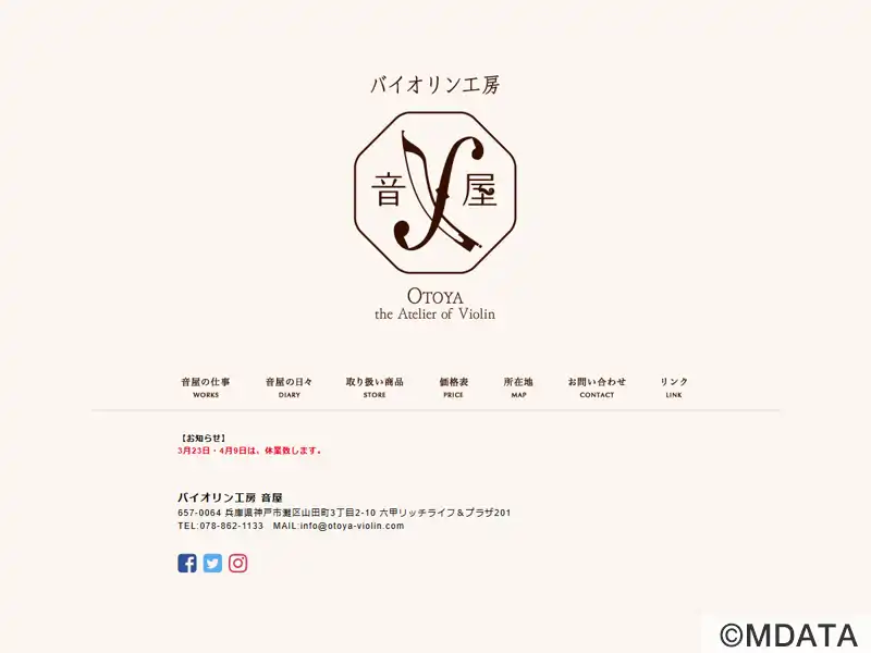 神戸市六甲にある弦楽器専門店。2011年に神戸市兵庫区で開業、2013年六甲に移転した。バイオリン、ビオラ、チェロ本体および弓、各種ケース、弦・松脂・肩当てなどのアクセサリの販売や、ペグ調整、ペグ交換、指板削り、駒、魂柱など楽器本体の修理・調整や、弓の毛替え、チップ交換、皮巻き、銀線巻きなどの施行を行う。一人ひとりと充分なコミュニケーションをとった上での対応を行う。遠方場合には宅配での受け渡しも可能。