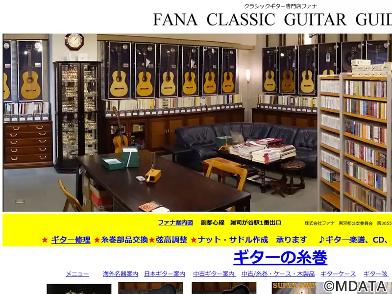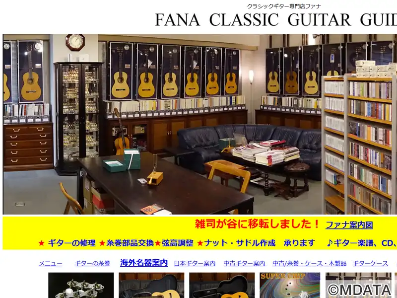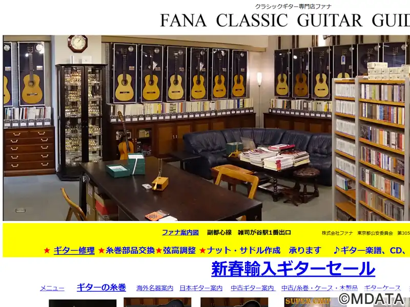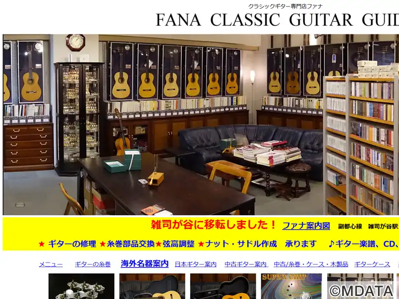 豊島区にある1972年創業の老舗クラシックギター専門店。世界各国から選りすぐった手工ギターや名器を展示し、ギター弦や糸巻きなどのアクセサリーも豊富に取り揃えている。ギター販売のほか、ギター付属品、楽譜・書籍などギター関連商品、修理・カスタマイズも提供する。また、ギター教室「ファナギタースクール」では子供から大人までを対象に質の高い個人レッスンを行なっている。2024年、池袋から雑司ヶ谷に移転した。