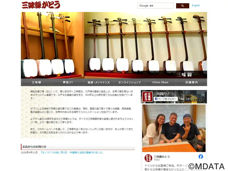 荒川区東尾久に、1989年開業した三味線専門店。津軽、長唄、民謡などの三味線を販売し、熟練の職人による張替や修理など各種メンテナンスに対応する。専用マイク内蔵で、アンプやエフェクターへ接続可能なエレクトリック三味線「夢絃21」の製造販売を行う。2Fには2009年オープンした邦楽を主体としたライブスペース「ちとしゃん」を運営。伝統と革新の音が鳴り響く場所として、邦楽の新しい楽しみ方を提案している。