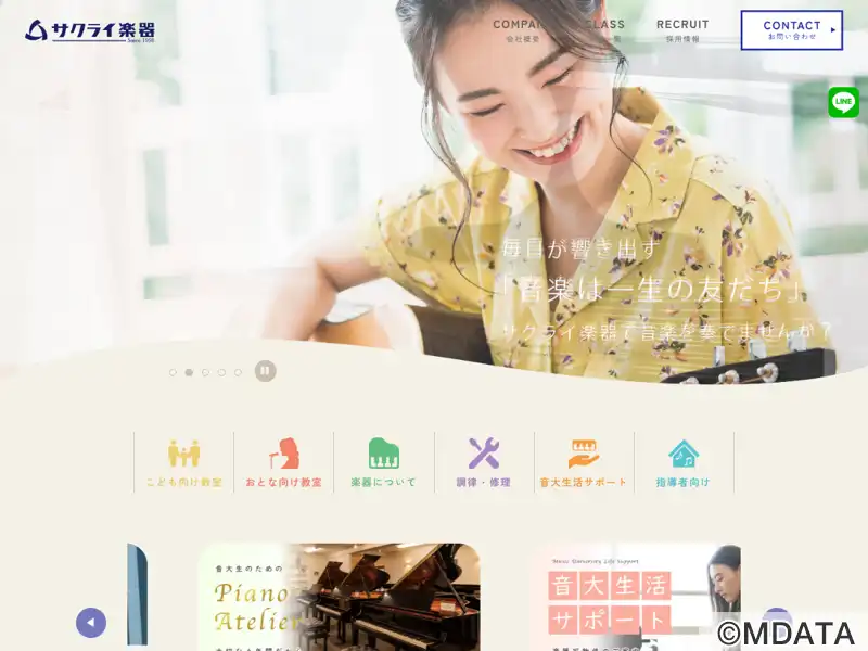 東京都板橋区の成増に本店をもつ、地域密着型の総合音楽ショップ。音楽教室の運営を中心に、ピアノ、鍵盤楽器、弦・管楽器、ギターなどの販売・レンタルに対応。試奏可能なピアノアトリエも併設。レッスンは、ヤマハ音楽教室を中心に、子どもから大人まで30種以上のコースを展開し、初心者から上級者まで幅広く対応。講師は音大出身者や現役演奏家が揃い、個別カリキュラムで指導。調律や修理などの技術サポートも充実している。