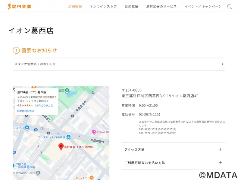 住所 | 江戸川区西葛西3-9-19 イオン葛西店4F |