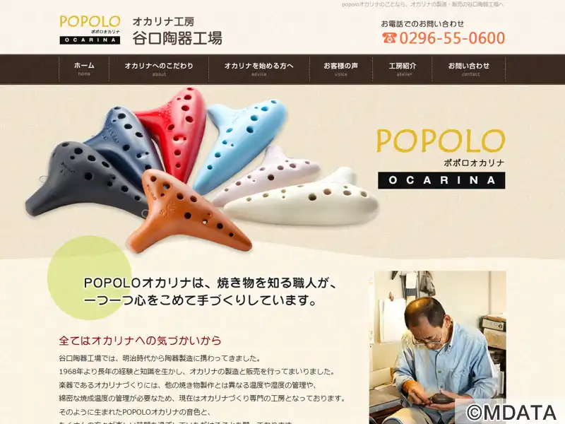 1968年からオカリナの製造・販売を手掛ける工房。明治時代に遡る陶器製造の歴史を持つ。独自の温度や湿度管理、綿密な焼成温度の監視など、厳格な品質管理を行い、良質な土の選定から最終製品までの高品質を追求している。主要製品「POPOLOオカリナ」は、低音から高音までの安定した音色、吹きやすさ、音の立ち上がり、響きのバランスが特徴で、初心者向けから上級者向け、受注生産モデルまで幅広いラインナップを提供する。