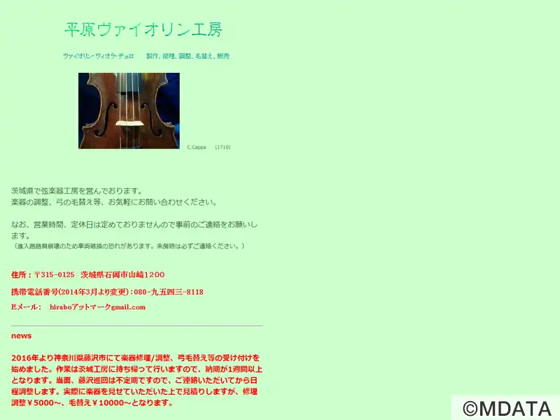 | 名称 | 平原ヴァイオリン工房 |