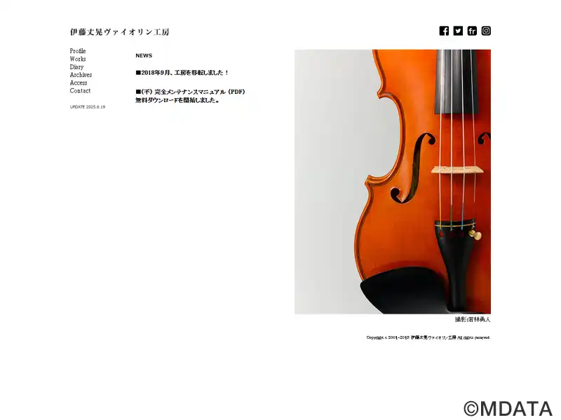 ヴァイオリン族楽器の製作・修理・調整・販売、弓の毛の張り替え・修理を行なっています。新作楽器はヨゼフ・カントゥーシャ・スタイルの製作法で作っています。音色や見た目の美しさはもちろん、発音の良さ、各弦のバランス、楽器の実用品としての扱いやすさにこだわって製作しています。ご購入後の調整・修理などもご安心下さい。プロ・アマチュア問わず、随時注文は受け付けています。2018年9月、工房を移転。