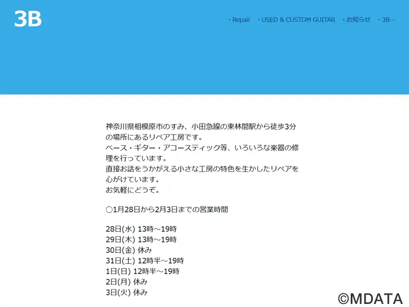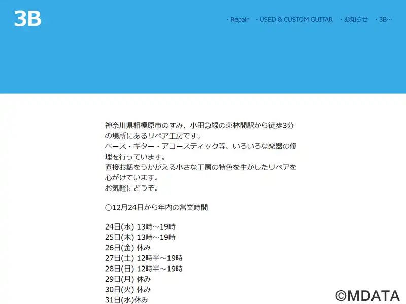 | 名称 | ギター・ベースの修理工房 3B |