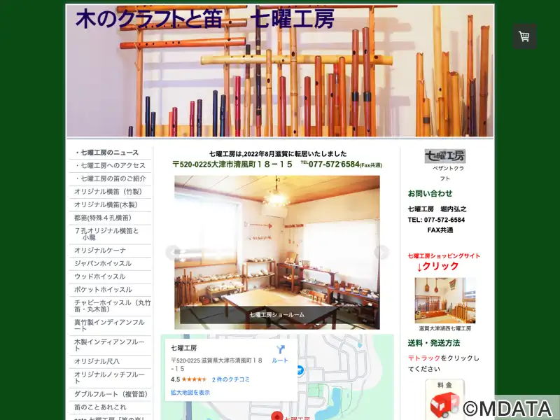 音の出し易さ、音程の正確さ、操作性を踏まえて、気軽に楽しめる笛の製作を目指し、本漆で仕上げた竹製や木製の本格的なオリジナル横笛や尺八を製作販売しています。機能性は十分に持ちながらも自由度が高く、しかも上達も早い笛は ないだろうかと考えられた方には当工房の笛をおすすめします。 また、 鳥や虫の鳴き声のするおもしろい笛や アンサンブルが楽しめる小さなオカリナなども みかんの木で作っています。2021年8月、大三島より滋賀大津に工房移転。