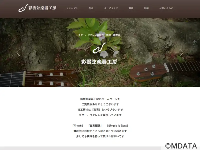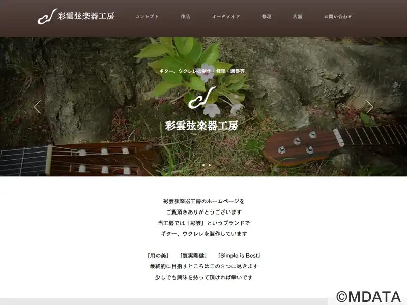 山形市にあるギターとウクレレの弦楽器工房。「用の美」「質実剛健」「Simple is Best」を理念に掲げ、一本一本をすべて一人の職人が手作業で製作。アコースティックギターやウクレレ製作から、エレキ・アコースティックの修理、メンテナンス、改造、塗装にも幅広く対応。ボディシェイプやネックシェイプ、使用材やパーツにこだわったカスタムオーダーも受け付ける。実用性と温かみを兼ね備えた楽器づくりが特徴。