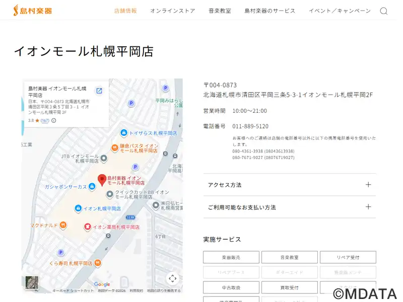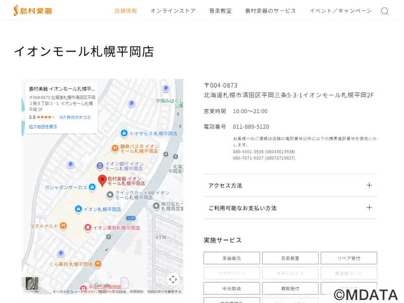 | 名称 | 島村楽器 イオンモール札幌平岡店 |