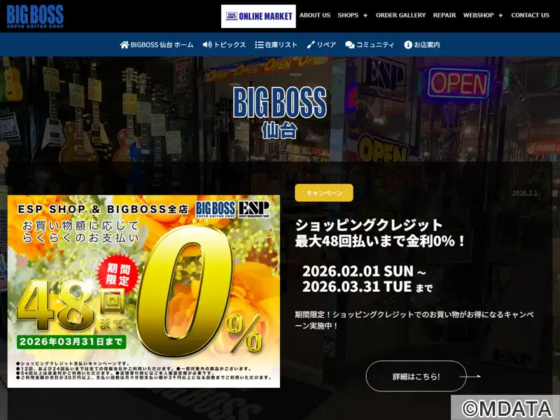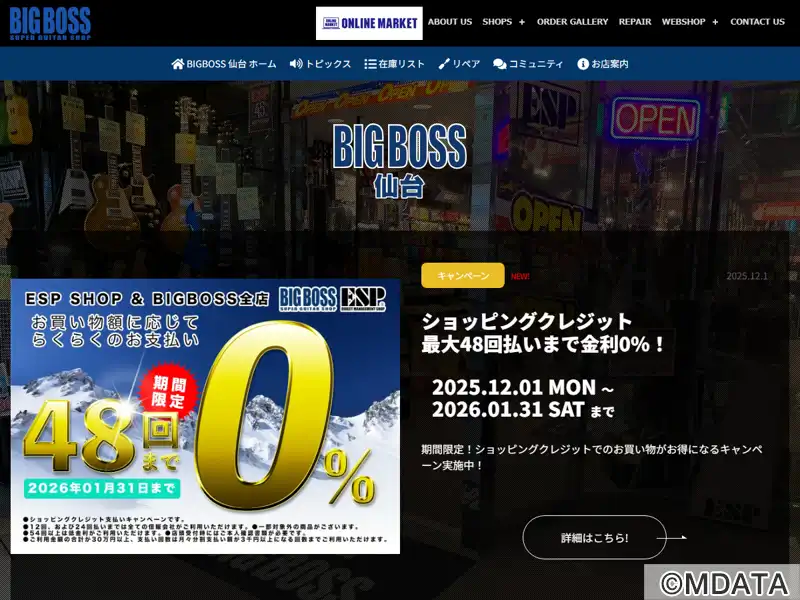 宮城県仙台市にESP系列のスーパーギターショップ。東北随一の品揃えを誇り、国内外のギター・ベースを常時700本以上取り揃え、プロ仕様の機材を豊富に取り扱う。ESPのカスタムオーダーメイドに対応し弦やアクセサリー、シールド、エフェクター、アンプも充実。店内にはリペアブースが併設され、ESP認定リペアマンが常駐。購入時のセットアップ調整に加え、新品・中古を問わずアフターサポートとして無料調整に対応する。
