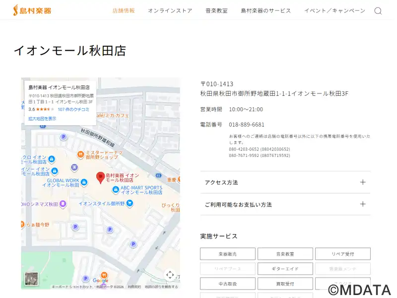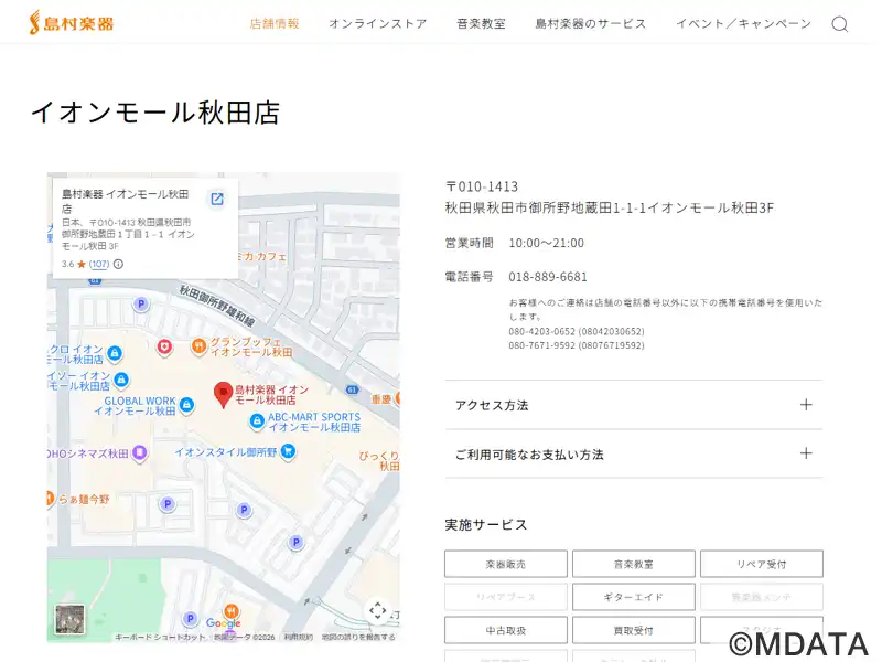 | 名称 | 島村楽器 イオンモール秋田店 |