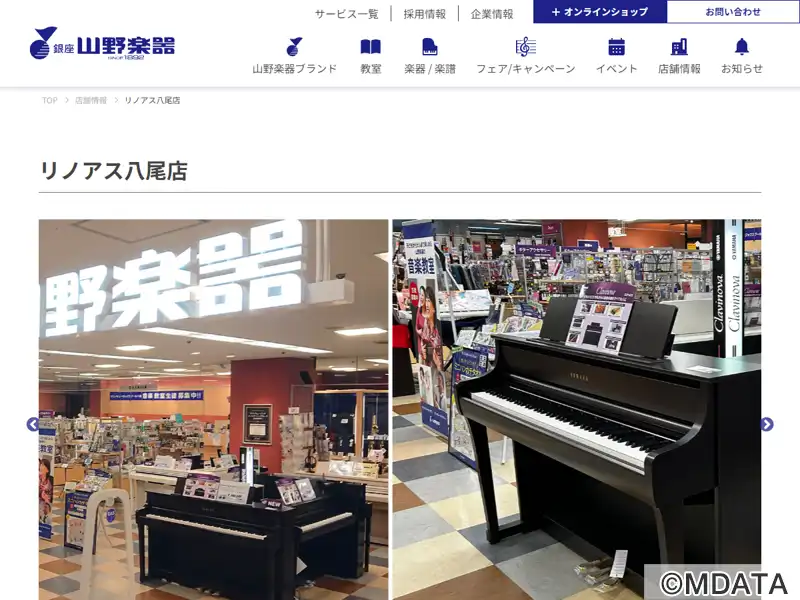 近鉄八尾駅から徒歩1分の場所にある、ショッピングセンターLINOAS7階にある山野楽器の八尾店。音楽・映像ソフトから、電子ピアノやギターなどの楽器、教育楽器や楽譜、アクセサリーまで様々な商品を取り揃える。また、音楽教室「ヤマノミュージックスクール八尾」も併設。ピアノ、バイオリン、サックス、フルート、ギター、ベース、ドラムなどのレッスンを開講している。子供から大人までアットホームな雰囲気で楽しめる。