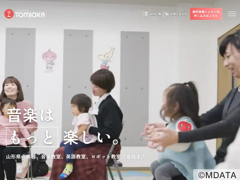 山形市七日町に1897年創業した総合楽器店。楽器、楽譜、音楽ソフトを豊富に揃えた販売、ピアノ調律・楽器修理調整などの定期メンテナンスを行う。また、ピアノ・エレクトーンの個人レッスンや、ティーンズエレキギター、フルート「トミオカオリジナル音楽教室」「ヤマハ音楽教室」などのレッスンを開講。その他にも、楽器のレンタル、グランドピアノ常設練習室の貸出し、最大90席のコンサートサロン「Opaホール」を運営する。