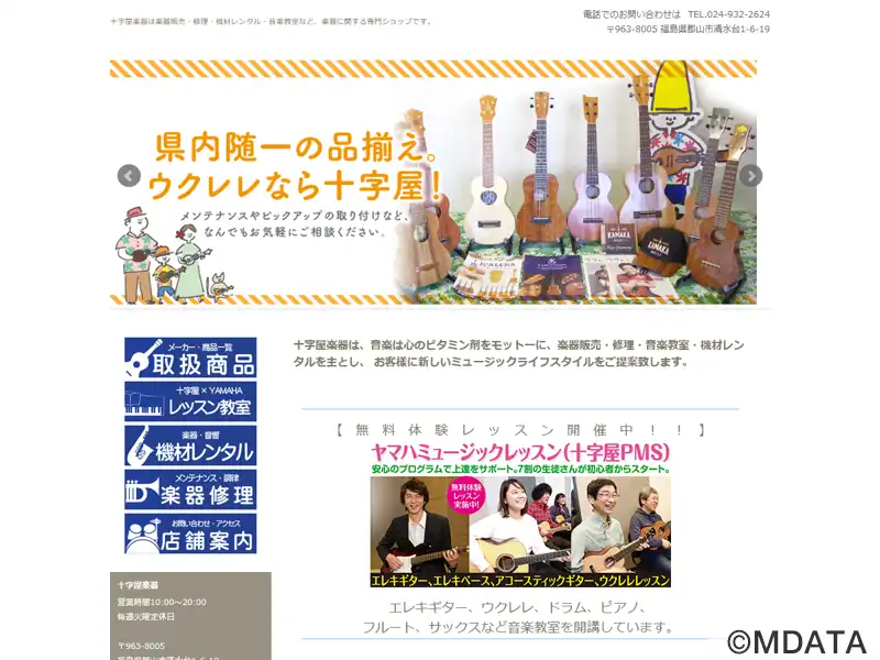 福島県郡山市にある総合楽器店。ギター、電子ピアノ、管弦楽器、和楽器、ハーモニカ、オカリナなどの楽器販売から、楽譜の販売、楽器修理、ピアノ調律、音響機器のレンタルなど、音楽に関する多様なニーズに応じる。また、初心者から経験者までを対象とした音楽教室も運営。オリジナルレッスンのヴォーカル、ドラム、ピアノ、フルート、サックス、トランペット、大正琴のコースや、大人向けの「ヤマハミュージックレッスン」を開講。