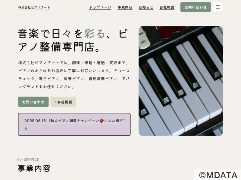 横浜市港北区にある鍵盤楽器総合サービスセンター。横浜市を中心にピアノ調律、修理、運送、ピアノ買取のサービスを提供している。アコースティックピアノの他、ハイブリッドピアノ(サイレントピアノ、自動演奏ピアノ、アバングランド)、電子ピアノまで自社専門スタッフが修理対応する。ピアノ付属品等を取り扱う。2017年1月川崎市高津区から店舗移転。2020年9月より(株)ピアノアートとして再スタートした。