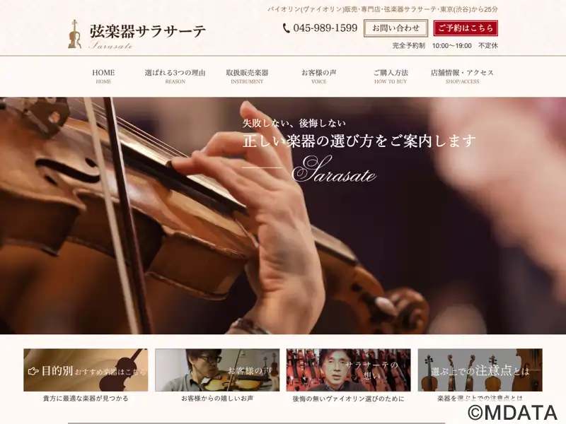 横浜青葉台にあるヴァイオリン、ヴィオラ、チェロの専門店。1997年創業。最高水準の完全手工ヴァイオリンや手工製分数ヴァイオリン、弓などのアイテムを展示・販売。ヴァイオリンの選び方や選ぶプロセスのノウハウを提供し、楽器の音や性能を重視している。真の名器を見極める確かな眼力と、卓越した調整技術で楽器からの最上の音を引き出す。楽器のランクや演奏者の音の好みをバランス良く考慮し、選びのサポートを行っている。