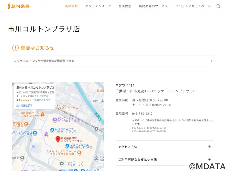 | 名称 | 島村楽器 市川コルトンプラザ店 |