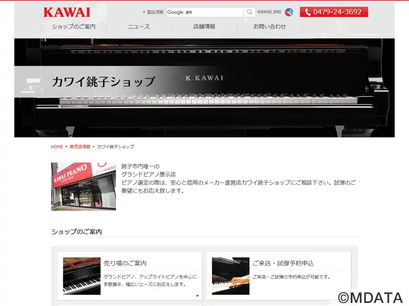 銚子市にあるKAWAI直営の楽器店。銚子市内で唯一のグランドピアノ展示店。厳選された中古再生ピアノも取り扱い、試弾も可能。調律・修理にも応じる。子どもから大人までの人に向けてのピアノ音楽教室を開講。グランドピアノのレッスン室レンタル可能で、ピアノ教室向けのホームページ作成サービスも提供している。ショップ裏に駐車場あり。