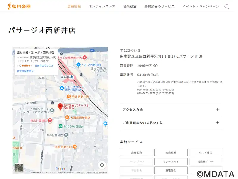 | 名称 | 島村楽器 パサージオ西新井店 |