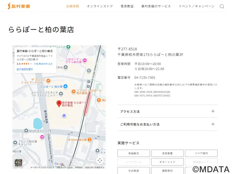 | 名称 | 島村楽器 ららぽーと柏の葉店 |