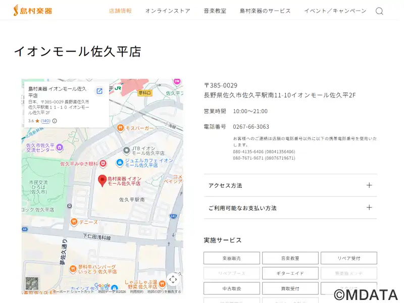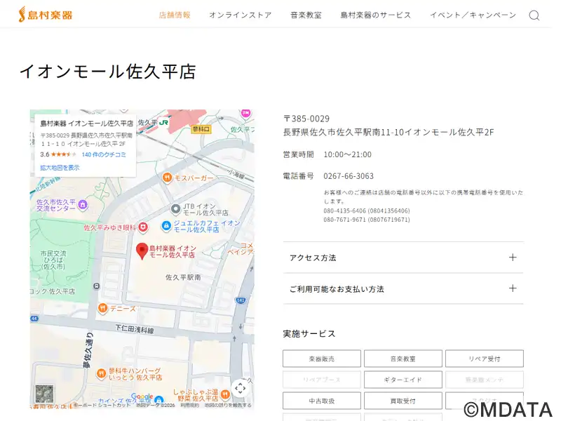 | 名称 | 島村楽器 イオンモール佐久平店 |