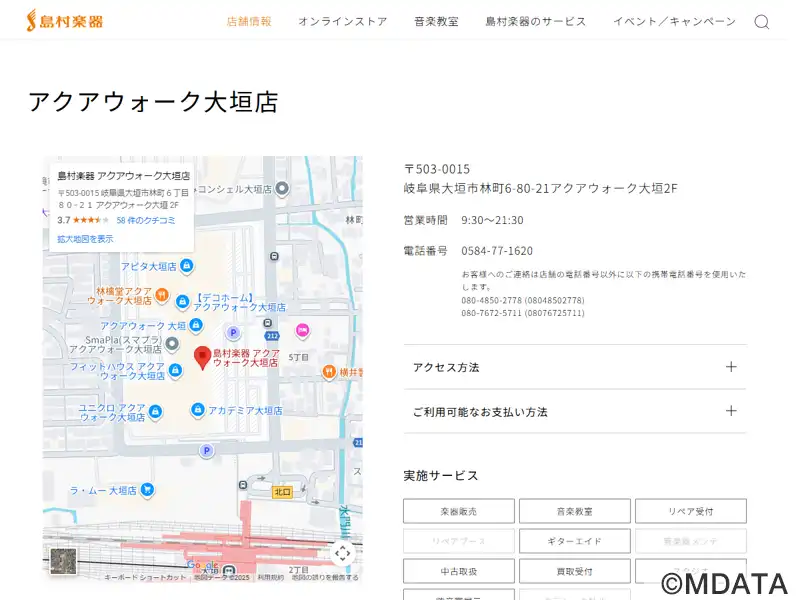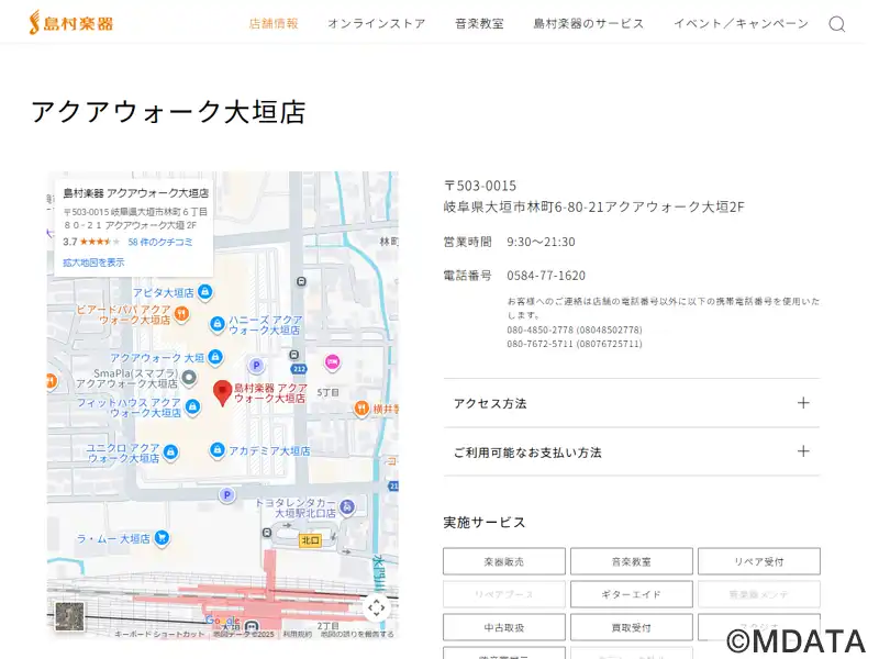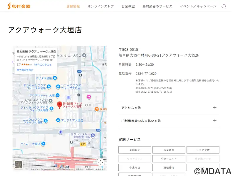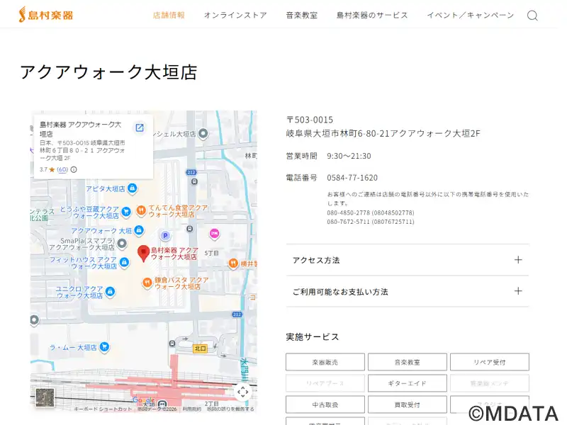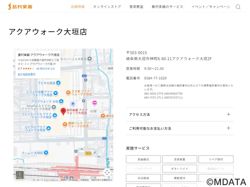 | 名称 | 島村楽器 アクアウォーク大垣店 |