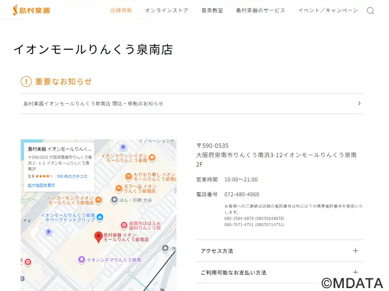 | 名称 | 島村楽器 イオンモールりんくう泉南店 |