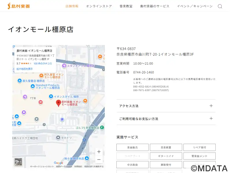 橿原市のショッピングセンター「イオンモール橿原」3階に2008年オープンした総合楽器店。エントリーモデルからフラッグシップモデルまで、選べる幅広い品揃えのギターや電子ピアノコーナー、管弦楽器、デジタル機材、楽譜やアクセサリーを取り揃えている。店内には多彩なレッスンコースを用意した音楽教室、バンドや個人練習ができるレンタルスタジオがあり、音楽を楽しむさまざまなサークルやイベントを開催している。