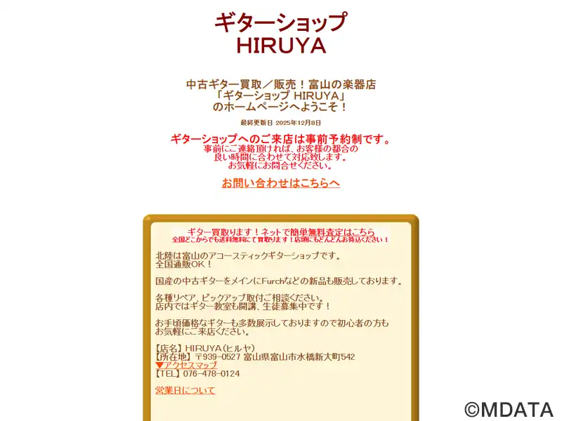 富山市水橋・白岩川のほとりにあるアコースティックギターショップ。国産中古ギターをメインに、初心者でも弾きやすくお手頃価格のギターをセレクト。全て調整済みで販売している。リペアやピックアップ取り付けサービスも行っている。また、「弾き語り」や指弾きスタイルの「ソロギター」、ウクレレなどのギター教室も開講。レッスン日時を自由に選べる予約制マンツーマンレッスンで、初心者の方にも対応。ギターのレンタルも可能。