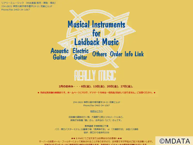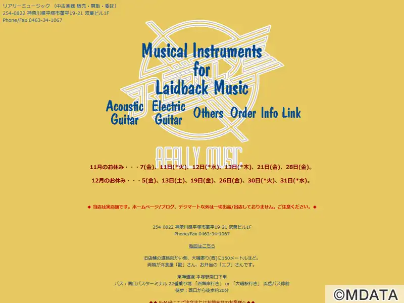 神奈川県平塚市にあるギターショップ。アコースティックギターやエレキギターをはじめ、ウクレレ、マンドリン、フィドルといった弦楽器のほか、ジャグバンドで使われるウォッシュボードなど、ユニークな品揃えが特徴。1960〜80年代の国産ギターや、ギブソン、マーチン、ギルドといったブランドのヴィンテージ楽器など、丁寧に調整された状態で提供。買取や委託販売、修理・調整、他店で購入した楽器のメンテナンスにも対応。