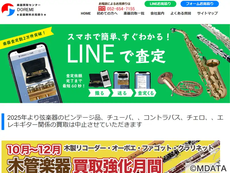 愛知県名古屋市に位置する、1963年創業の楽器専門の買取サービス。木管楽器や金管楽器をはじめ、クラシックギターやウクレレなど幅広いジャンルの弦楽器にも対応しており、各楽器の状態や付属品の有無、メンテナンス状態などにより丁寧な査定を実施。LINEや専用フォームにより、査定から入金までスムーズな取引を提供する。楽器を大切に扱ってきた利用者の思いにも寄り添い、再び価値ある楽器として新たな持ち主へつなぐ。