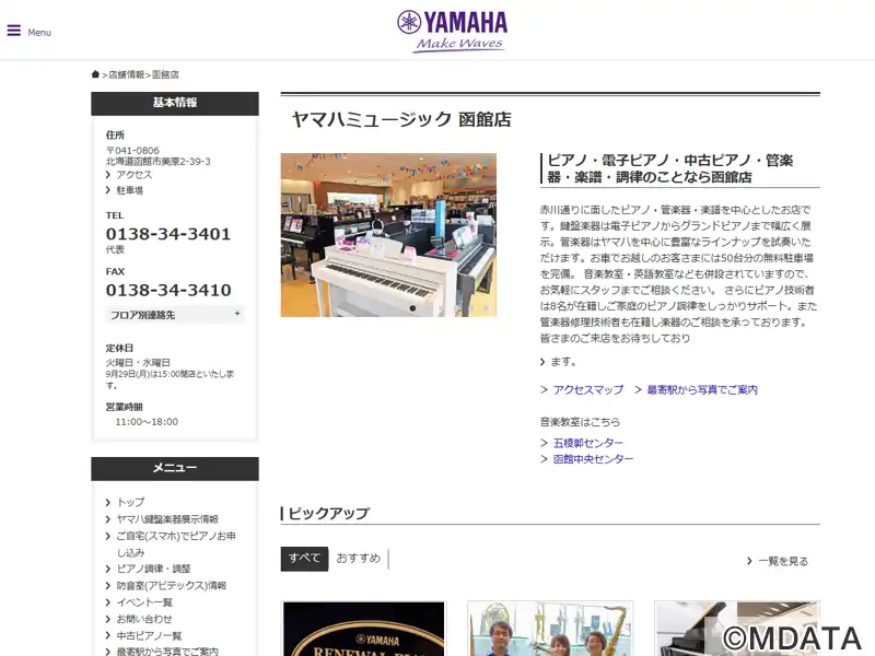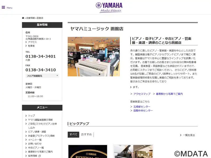 函館市にあるヤマハミュージック直営店。グランドピアノから電子ピアノ、エレクトーン、中古ピアノまで多数の鍵盤楽器を展示。すべて試弾が可能で、じっくりと聴き比べが可能。楽譜や音楽グッズ販売、修理・調律などアフターケアも行う。管楽器リペアルーム完備。函館中央センターレッスンセンターでは、ヤマハ認定講師による「ヤマハ音楽教室」、「大人のヤマハ音楽教室」を開催している。1Fのサロンスペースでは発表会やコンサートなども行われる。