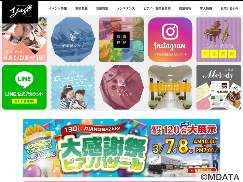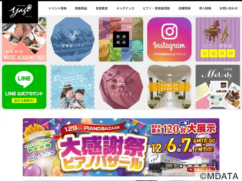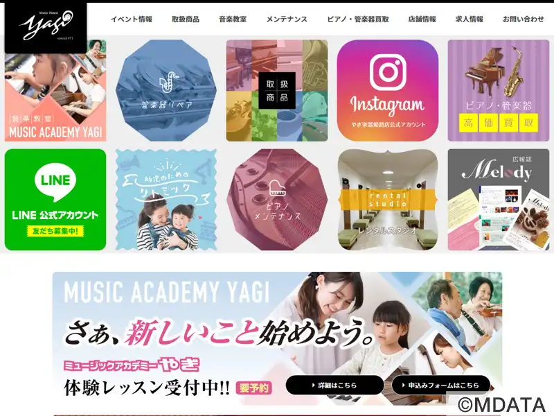 1971年に兵庫県加古川市で創業した老舗の総合楽器店。店内には鍵盤楽器、管楽器、弦楽器、ギターなどの豊富な楽器を展示・販売、試奏も可能。豊富な商品在庫を所有する。また、楽器の修理やメンテナンスなどのアフターサービスや、楽譜や音楽小物の取り扱いも行っている。店内の2階では音楽教室を開講。幅広いコースで、初心者でも安心して楽しめるレッスンを提供している。定期発表会やコンサート、コンクールにも参加できる。