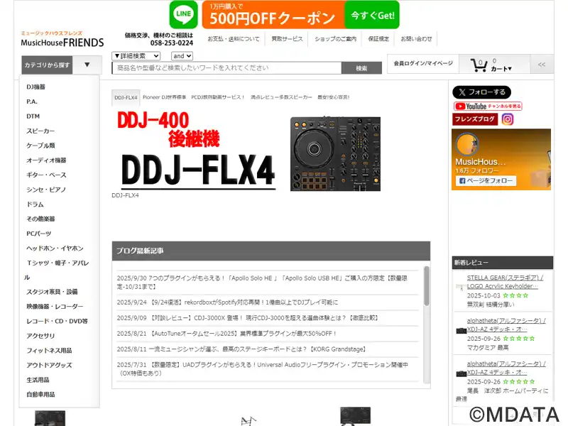 1981年に岐阜県岐阜に創業した電子楽器専門店。DJ機材、CDJ、PCDJ、ターンテーブル、ミキサー、DJセット、電子ドラム、シンセサイザー、ギター、ドラムなどを中心に、注目の商品情報を詳細に発信、オンライン販売を行う。ミュージックハウスフレンズ独占商品も多く、DJ初心者でもジャンルに合ったターンテーブルやPCDによるセットを提案し、機器に精通したスタッフが丁寧にサポートしてくれる。