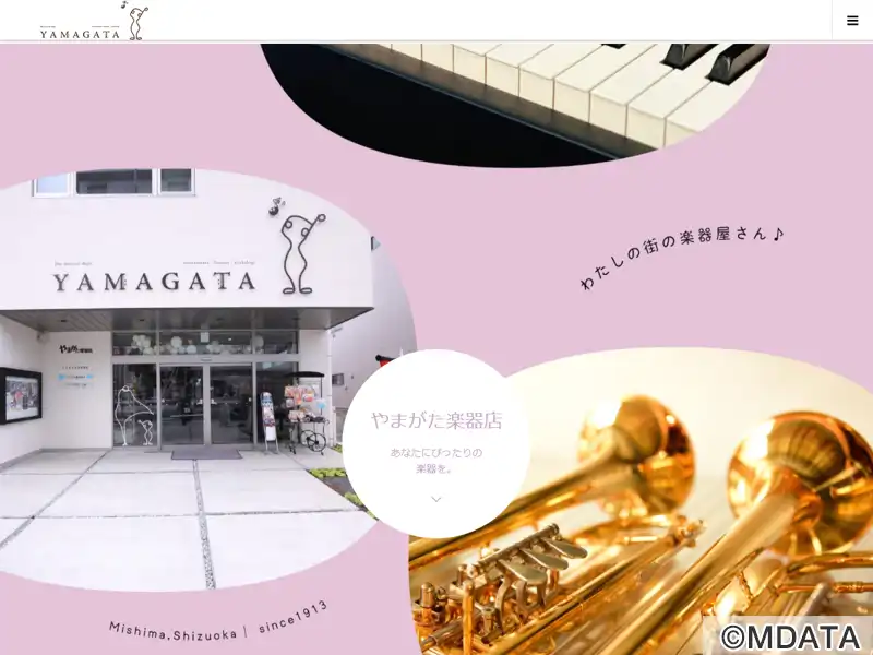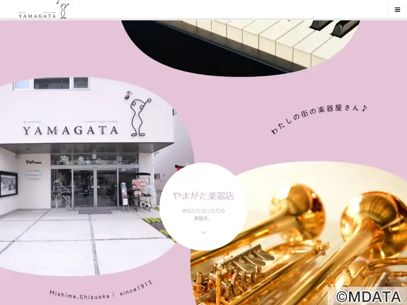 静岡県三島市に位置する、創業大正2年の老舗楽器店。ヤマハ特約店として、管楽器・鍵盤楽器・和楽器を中心に豊富な品揃えを持ち、販売のほか、レンタルやピアノの調律・修理などにも対応。専門スタッフによる丁寧なサポートのもと、楽器の購入後も安心して利用できる音楽教室は、子ども向けのヤマハ音楽教室から、多様なコースのオリジナルレッスン、大人向けサークル活動の場も用意。地域の音楽文化を支える拠点となっている。