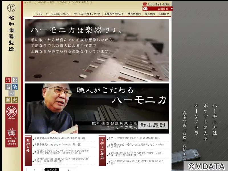 浜松で1947年に創業した楽器店。半世紀以上のノウハウをもとに、一本一本手作業で丁寧に調律されたハーモニカを製造している。設立者である酢山陸平氏のもと、ハーモニカの巨匠である宮田東峰氏の指導を受けながら、「スペシャルミヤタ」という商品を生み出しました。小学校教育でのハーモニカの使用や、観光土産としての販売など、時代とともに事業展開を進めてきた。製品はすべて手作業で製造され、品質管理も徹底している。