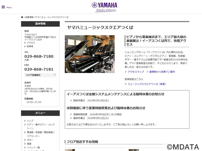 つくば市研究学園駅前のイーアスつくば3階にある総合楽器店。ピアノ、エレクトーン、電子ピアノから管弦楽器、ギター、ウクレレ、電子ドラムまでエリア最大級の楽器展示数で、試奏・試弾も可能。2万冊在庫の楽譜、アクセサリー、音楽雑貨も豊富に取り揃えている。また、併設するレッスンセンター「ミュージックスクエアつくば」では、14部屋のレッスン室があり、ヤマハ音楽教室・英語教室、ヤマハミュージックレッスンを開講。