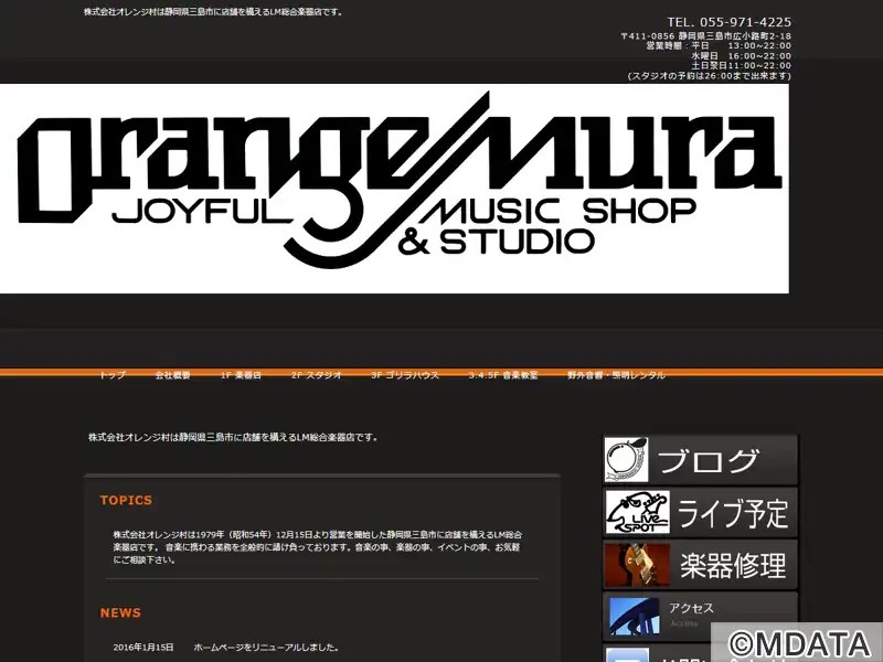 静岡・三島のLMシーンを支える1979年12月開業の楽器店。楽器(ギター・ベース・ドラム・マイクなど)やアクセサリー、楽譜の販売、修理、レコーディング・外部音響照明レンタルを行う。音楽スタジオは。吸音材の設定やアンプやドラムの配置で演奏が楽しくなる4部屋が用意されている。また、初心者の方で、さらなる技術向上を図りたい方向けの、ギター、ベース、ドラム、ボーカル、ピアノなどの個人レッスンも開講している。