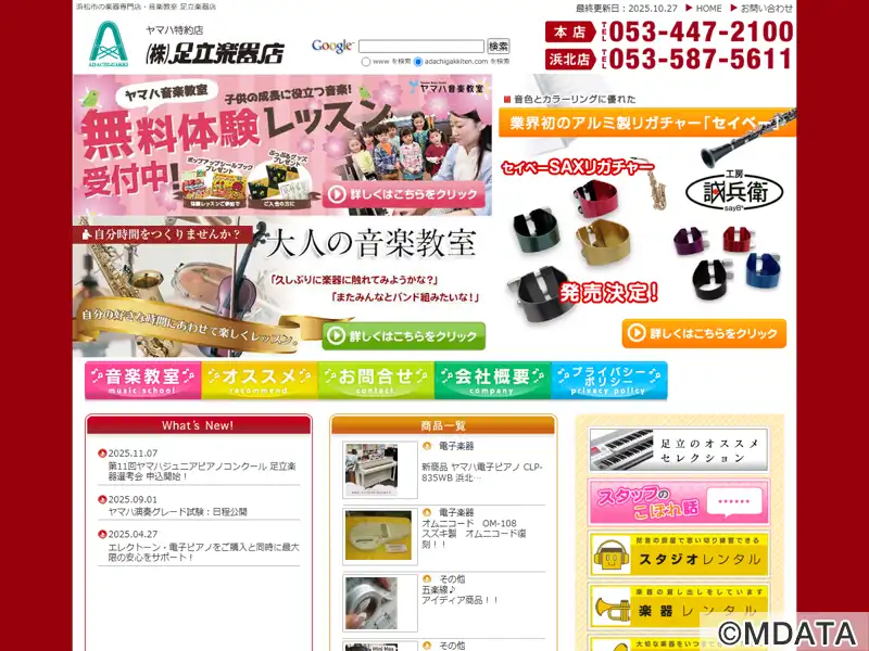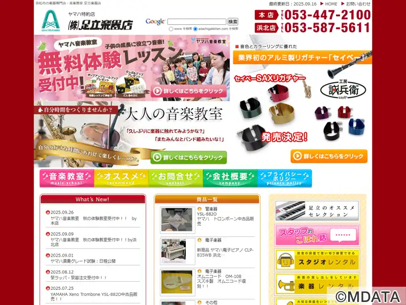 浜松市にある、明治23年創業の老舗の総合楽器店。ヤマハ特約店としてピアノ、レクトーン、弦楽器、管楽器などの楽器や譜面の販売、レンタル、調律、修理や、練習スタジオの貸し出しを行う。また、浜松エリアで音楽教室を運営。子ども向け「ヤマハ音楽教室」、大人向け「ヤマハミュージックレッスン」のほか、足立楽器オリジナルコースとしてピアノ、エレクトーン、バイオリン、フルート、クラリネットの個人レッスンを開講。浜北店あり。