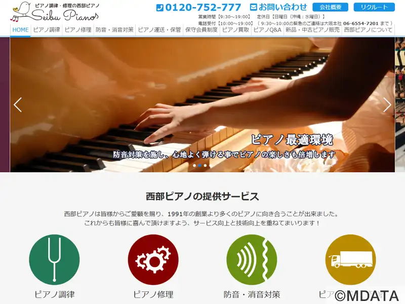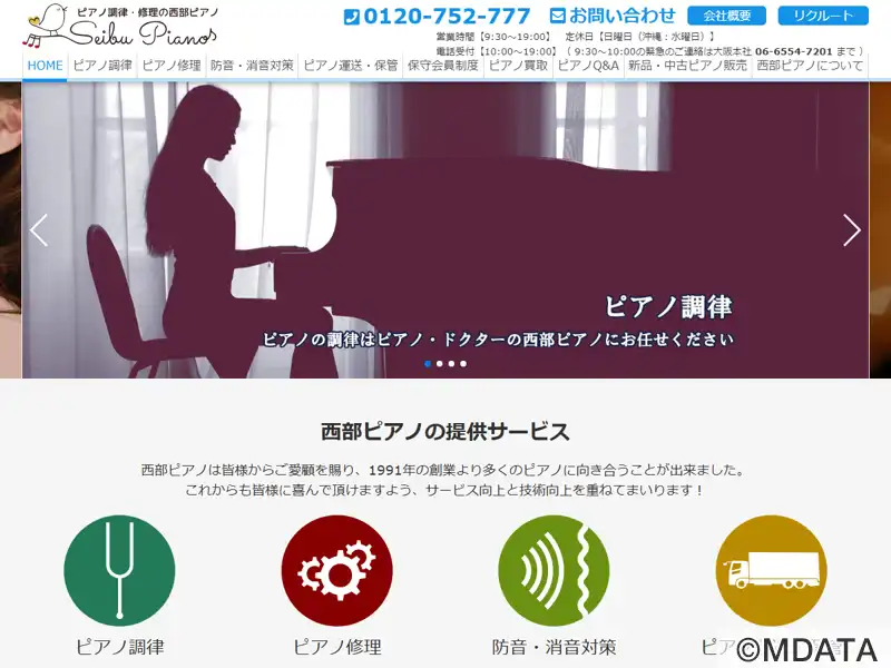 1991年に開業した大阪エリアのピアノ調律・メンテナンスを行うピアノショップ本社工房。大阪市鶴町の大正通りに位置し、黒と赤の建物が目印となっている。ピアノの音色をよみがえらせる「ピアノドクター」として、あらゆるピアノの修理・調律に対応している。技術向上の一環として、低価格な料金設定で提供。ピアノの保険と定期調律がセットになった保守会員制度を用意している。また、音楽教室と練習室レンタルも行っている。