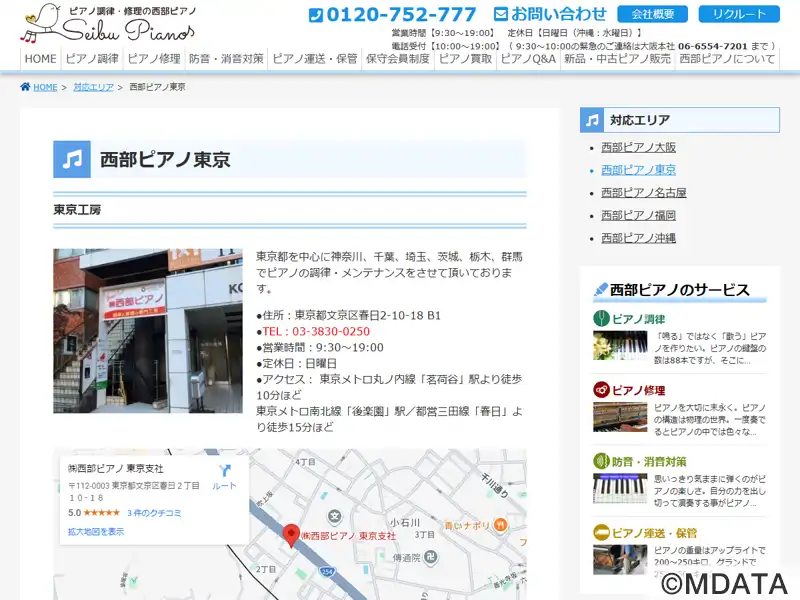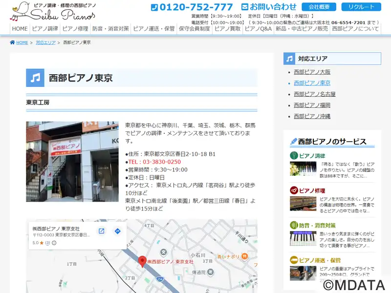 大阪で創業し、現在は全国でピアノ事業を展開している西部ピアノの、2016年開設の東京工房。「歌うピアノ」を作り出すために、約240本の弦を一本一本丁寧に調整し、調律を行う。末永く良い音を奏でるために、摩耗や劣化した部品の交換や修理も行う。また、気兼ねなく演奏を楽しむための防音・消音対策も提供し、ピアノの運送や保管も安全かつ丁寧に対応する。一貫したサービスの提供を通じて、ピアノライフをサポートする。