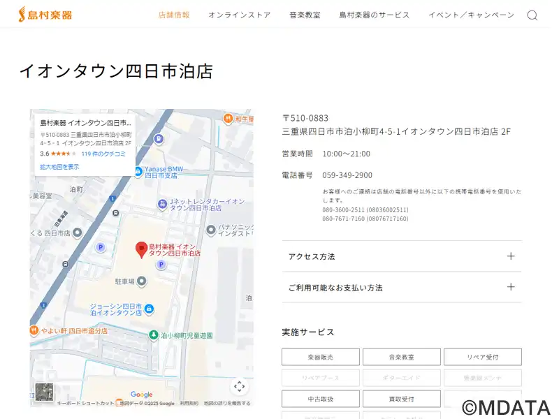 名称 | 島村楽器イオンタウン四日市泊店 |