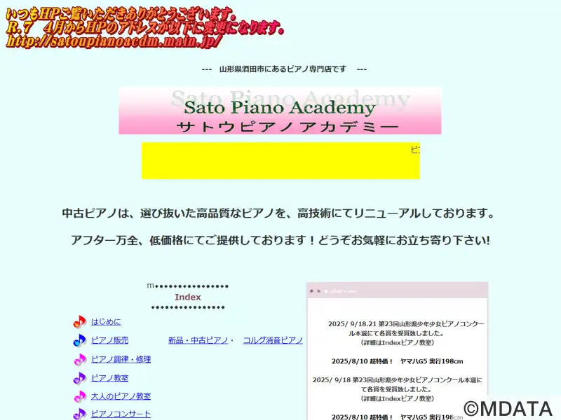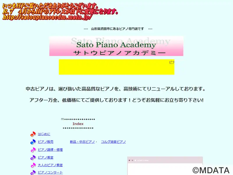 山形県酒田市にあるピアノ工房。新品・中古の厳選されたピアノを取り扱う。販売のほか、オーバーホール、調律、修理、ピアノ移動、買い取りなどのサービスも提供している。中古ピアノのリニューアルでは、外観だけでなく、アクションの状態も含め、品質の高いピアノのみを低価格で販売している。また、子供から大人までを対象としたピアノ教室も開講している。ピアノに関するあらゆるニーズに対応する信頼のサービスを提供している。