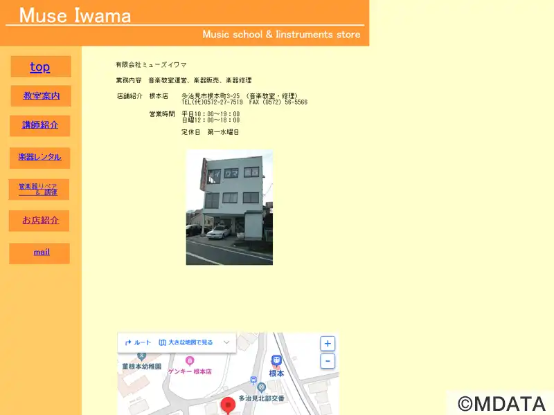 岐阜県多治見市の根本駅近くにある総合楽器店。楽器販売、修理、音楽レッスンを提供する地域に根ざした音楽の総合施設。専属リペアマンが常駐していて、管楽器の修理や調整、弦楽器のメンテナンスなど楽器のトラブルに迅速に対応する。中古楽器や楽器小物も豊富に取り揃え、楽器レンタルサービスも行っている。また、ピアノ、ギター、バイオリン、管楽器など幅広いレッスンを初心者から上級者まで対象に、音楽の学びを提供している。